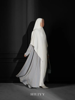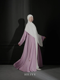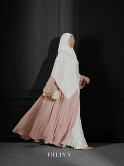 Pola lengan raglan yang lebar menjadikannya wudhu friendly, sementara cutting umbrella memberi tampilan jatuh indah dan feminin.